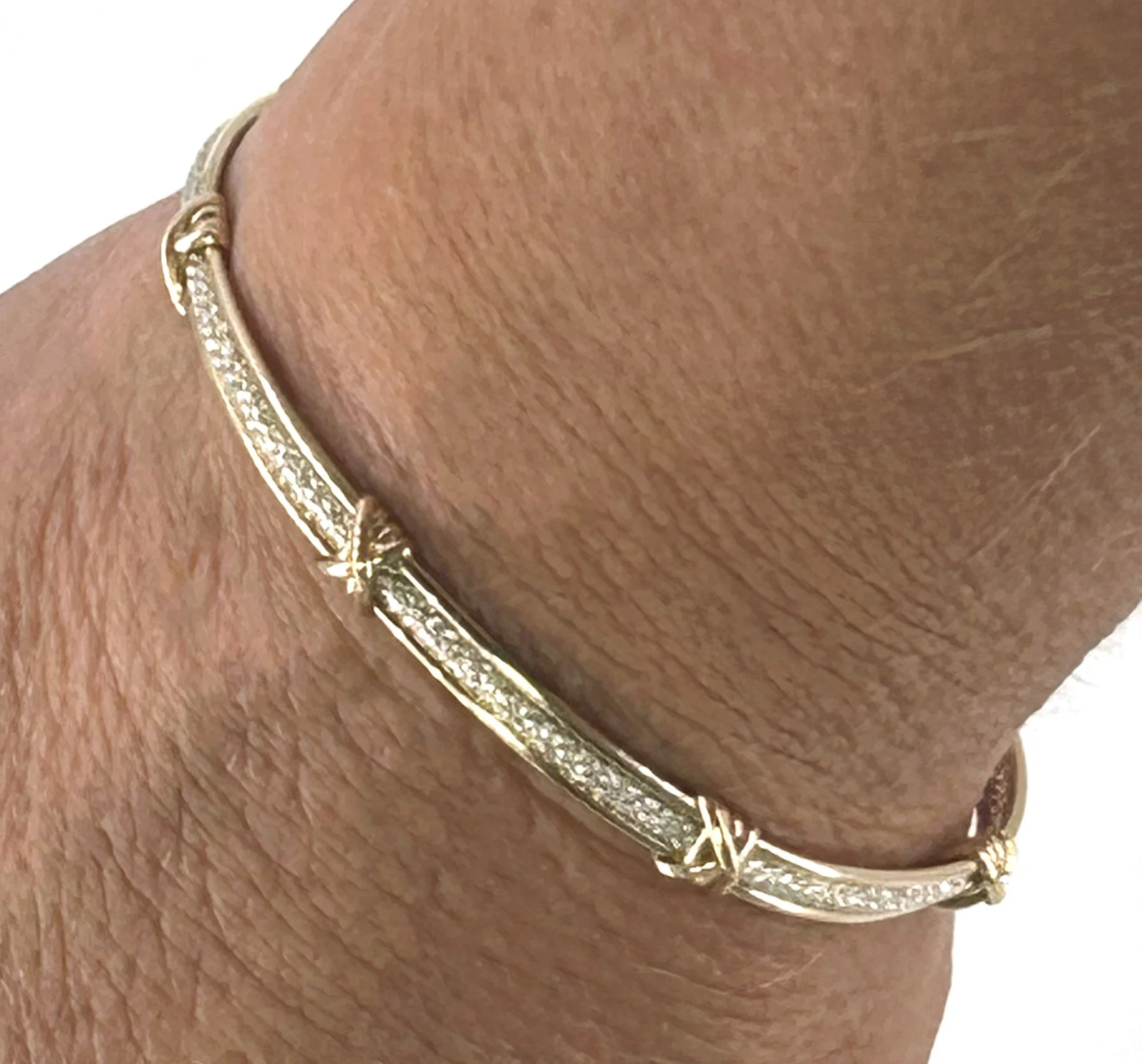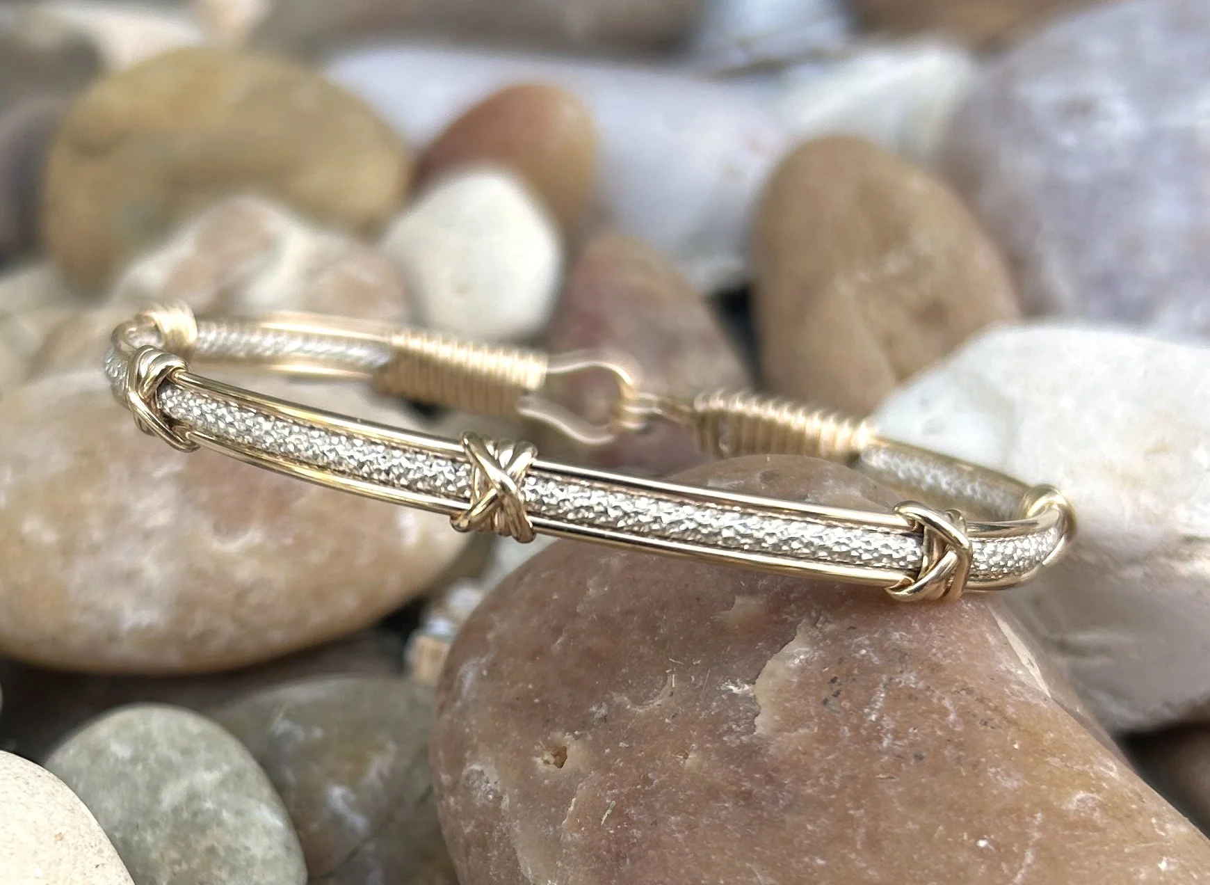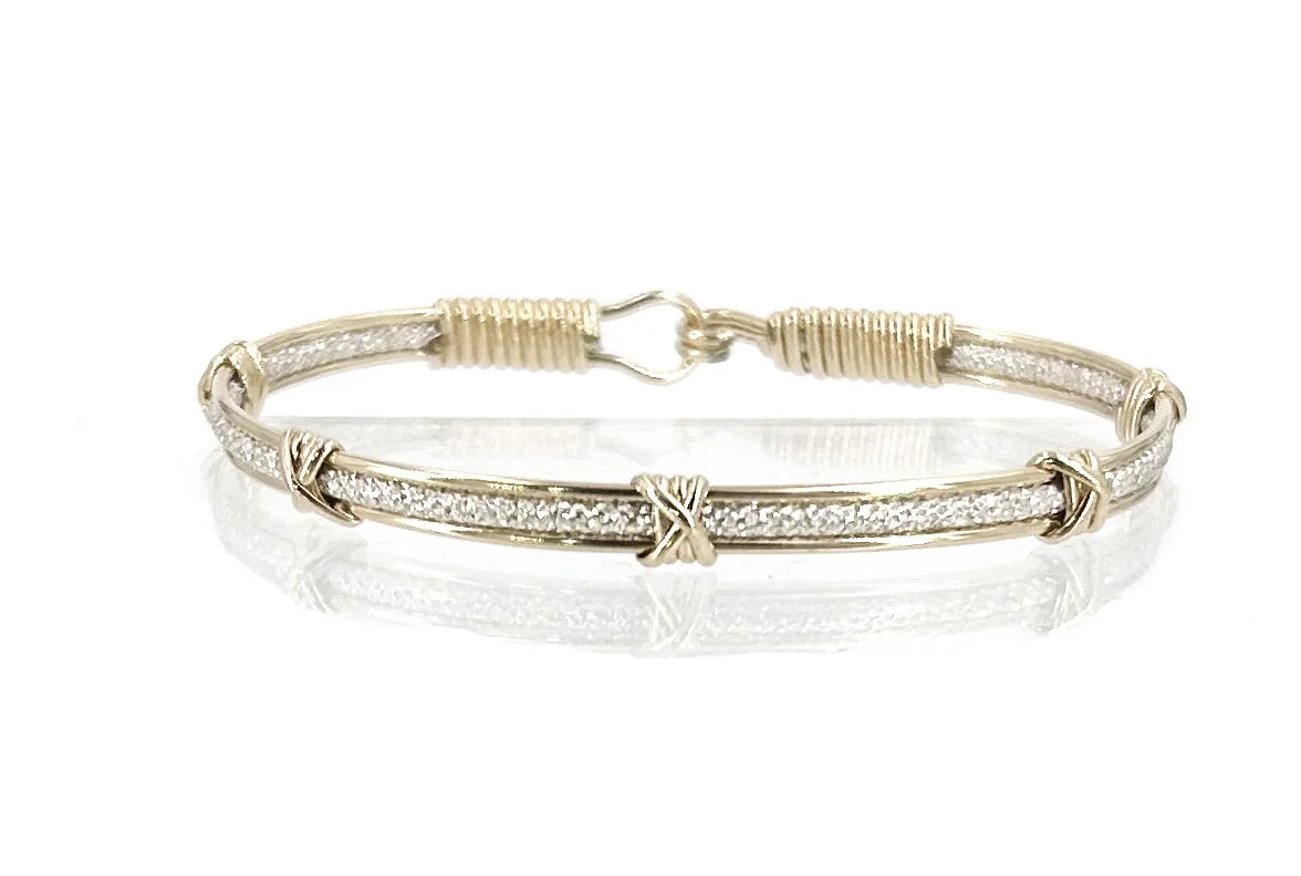 Sparkling silver with gold cross accents- great stacker addition!